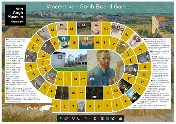 Play the board game together and follow Vincent van Gogh's journey through the places he lived and worked.